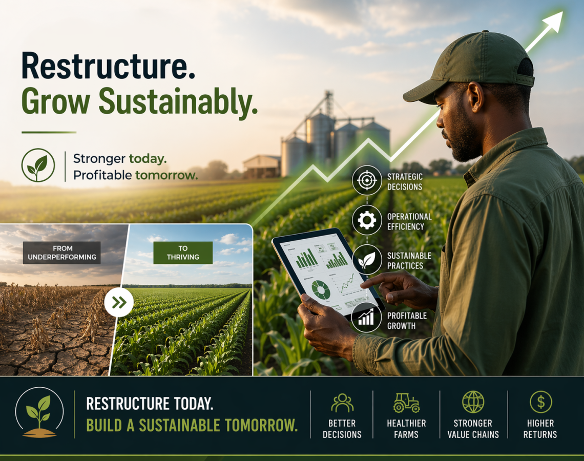 Restructuring is no longer optional, but rather an essential move for agribusinesses seeking sustained growth. By strengthening internal systems, improving financial discipline, embracing digital tools, and repositioning within stronger markets, enterprises can enhance performance, unlock new revenue opportunities, and build long term resilience in an increasingly competitive landscape. The businesses that will lead the next decade of agribusiness growth are not necessarily the largest, they are the best-structured.